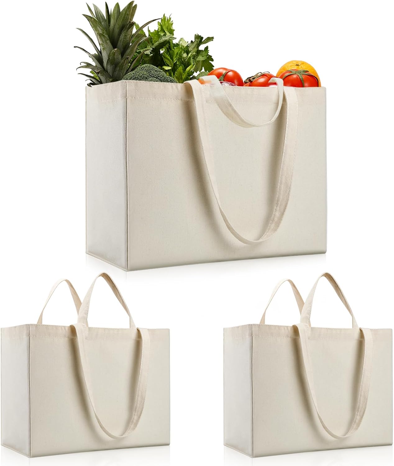 OKBA 3 Pack Large Canvas tote Bags,Polyester Tote Bags for Sublimation,Heavy Duty Canvas Shopping Bags and Washable Reusable Grocery Bags with Long Shoulder Strap and Short Handle
