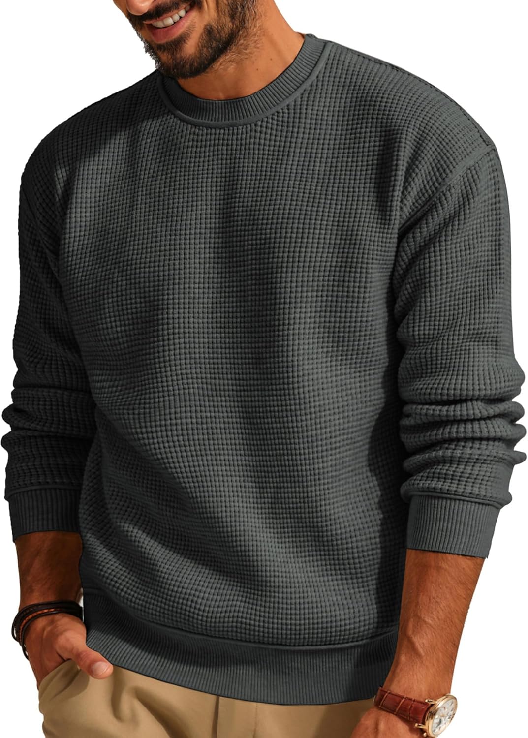 PJ PAUL JONES Mens Sweater Crewneck Knit Sweaters Casual Waffle Pullover Sweater for Men