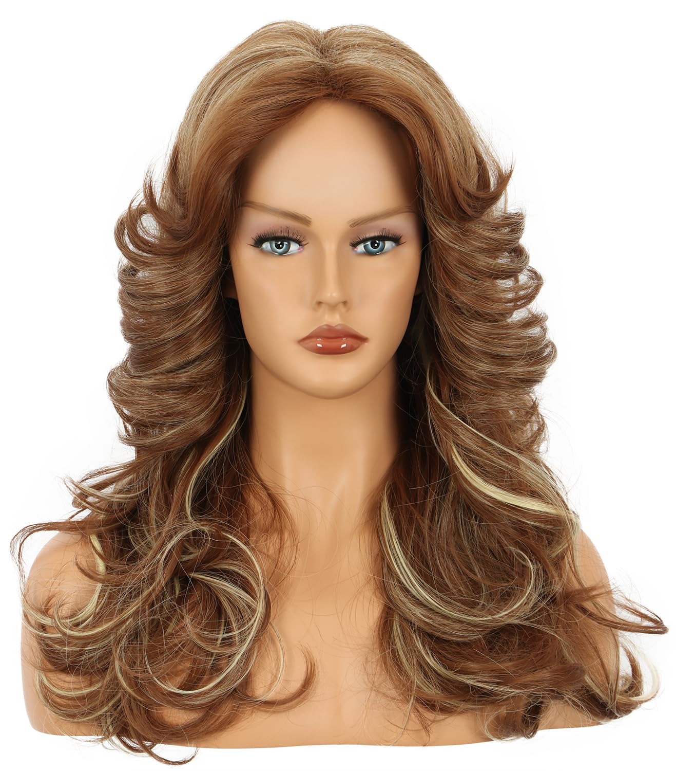 yuehong Women Long Dark Brown Blonde Curly Wig 70s80s Disco Costume hair Vintage Feathered Singer Cosplay Costume Wig