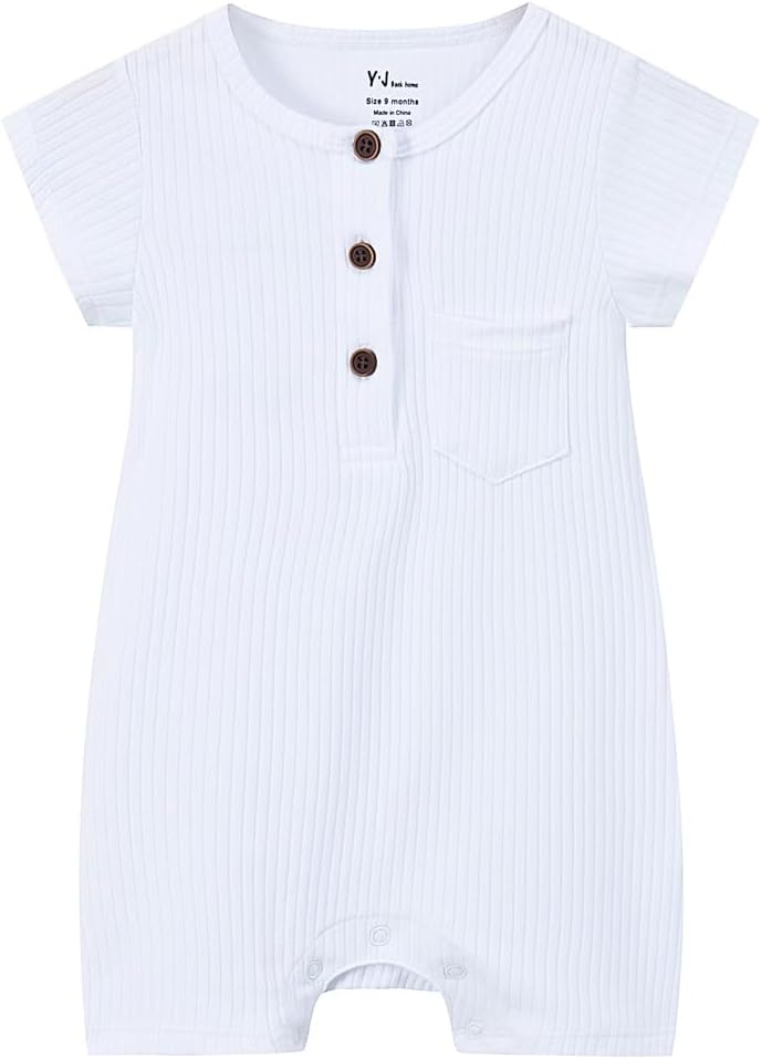 Infant Boy Quality 100% Cotton Ribbed Onesie, Pocket Baby Romper, Short Sleeve One-piece Shirt For Summer, White, 6-9 Months