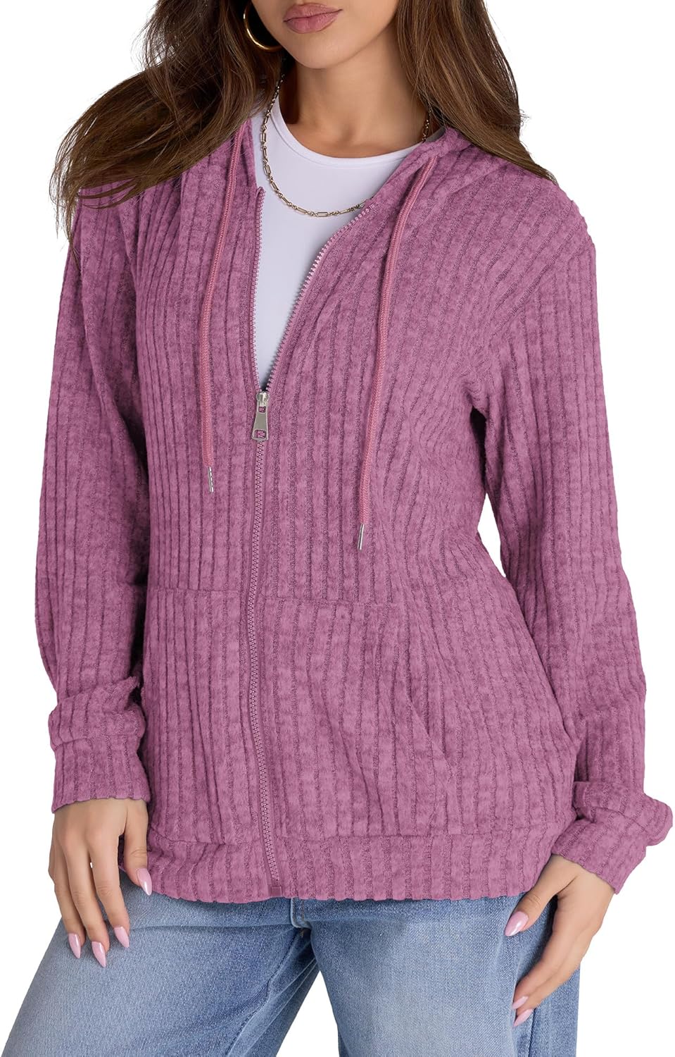 Zip Up Hoodie Women Oversized Sweatshirt Long Sleeve 2026 Fall Outfit Lightweight Jackets Workout Clothes