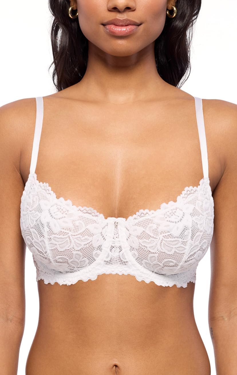 Emma Underwire Lace Bra, Unpadded Sheer Lingerie for Women, Perfect Everyday Balconette Demi Bra
