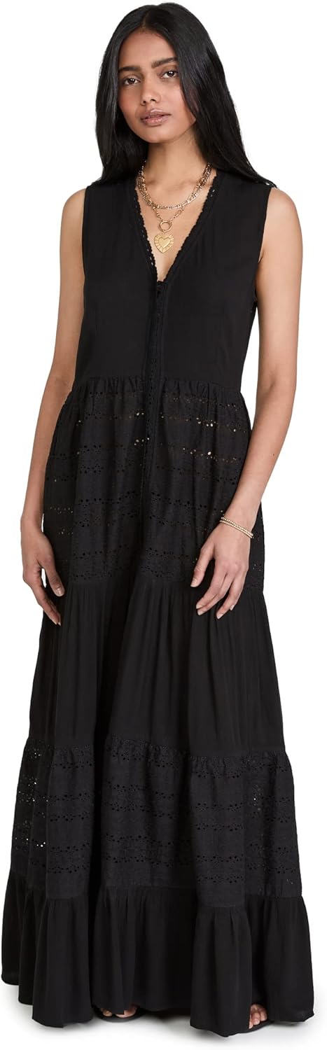 Playa Lucila Women's Eyelet Maxi Dress, Black, XL