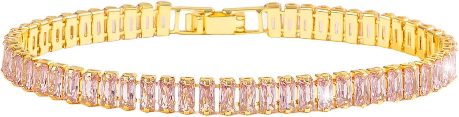 18K Gold Plated 5.0mm Pink Cubic Zirconia Tennis Bracelet|5.9-7.5in Multi-Size Classic Women's Tennis Bracelet