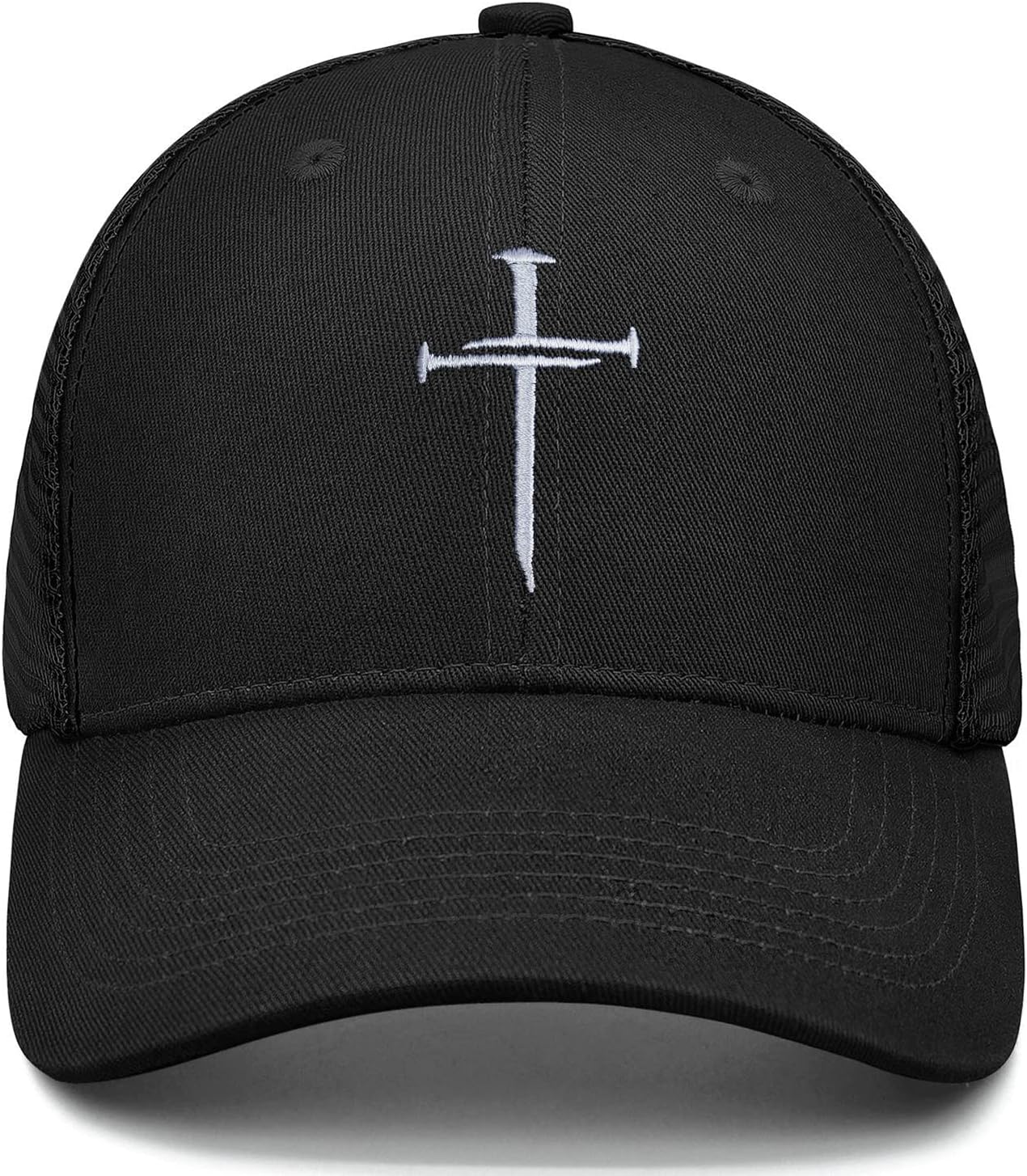 Christian Hats Nail Cross Jesus Hat Black Embroidered Baseball Cap