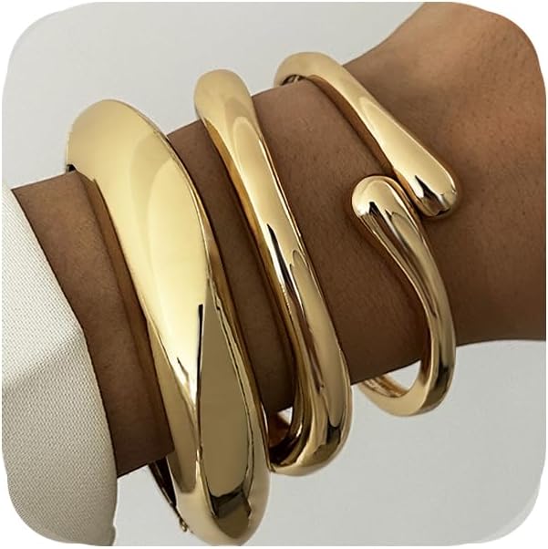Chunky Gold Bangles Bracelets for Women Gold Cuff Bracelet Set Waterproof Non Tarnish Stack Bracelet for Women Gifts