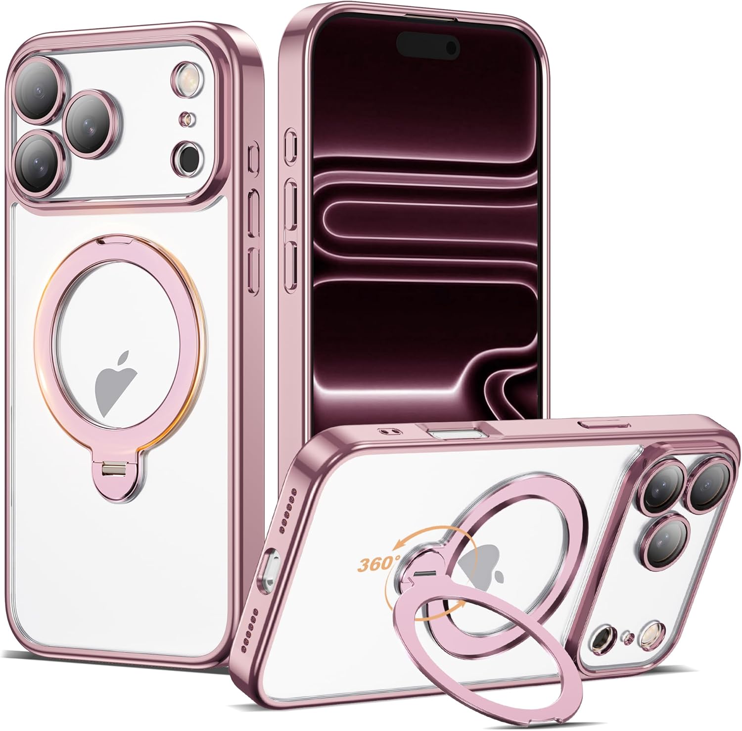 ![Compatible with iPhone 17 Pro Case with 360° Rotatable Magnetic Ring Stand [Compatible with Mag-Safe] Full Camera Lens Protector Plating Clear Phone Case for iPhone 17 Pro 6.3", Pink - Image 2](https://m.media-amazon.com/images/I/71AMOE5ZQ2L._AC_SL1500_.jpg)