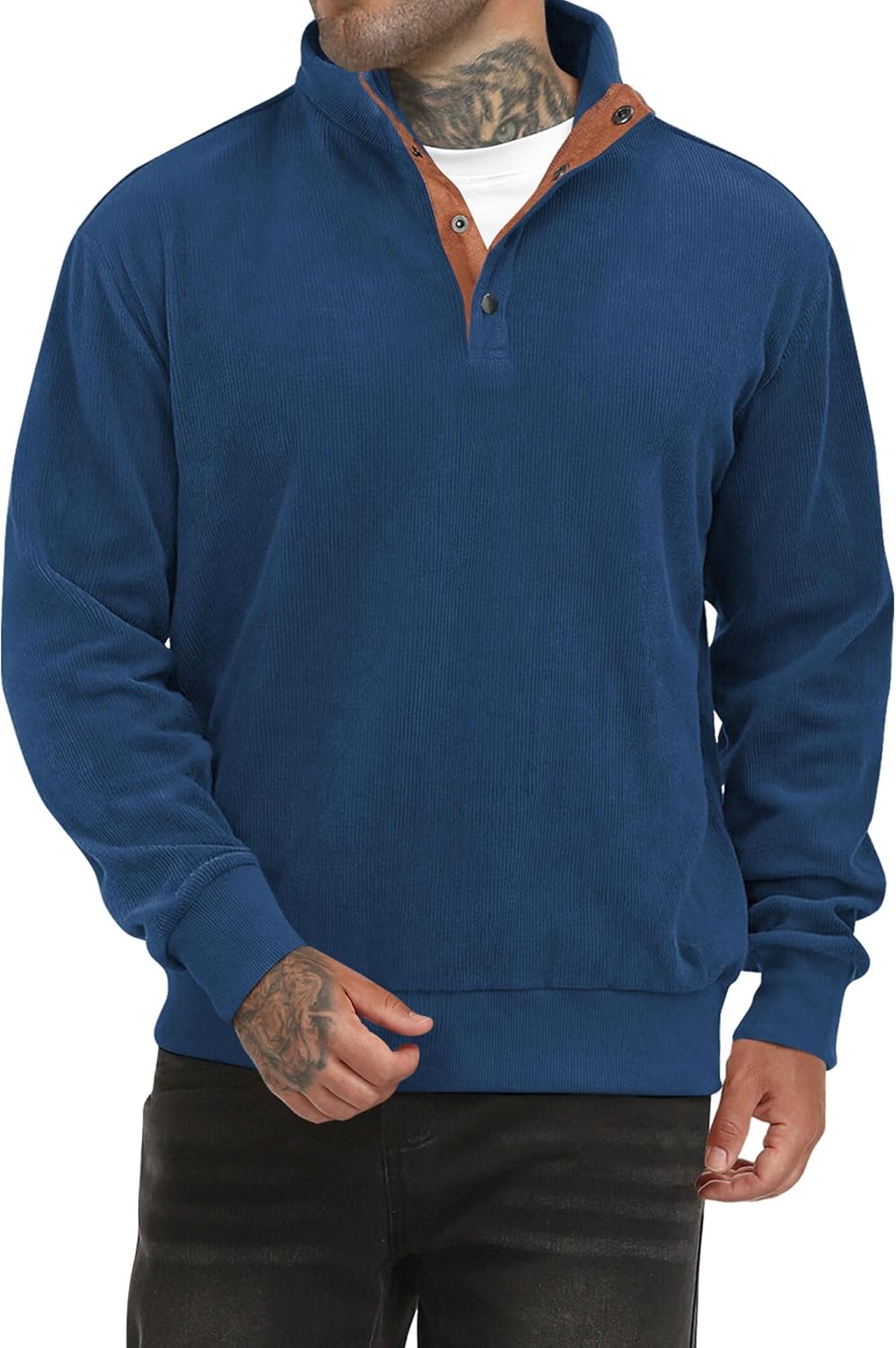 Mens Corduroy Sweatshirt Retro Metal Button Heavyweight Casual Workwear Warm Stylish Pullover S-2XL