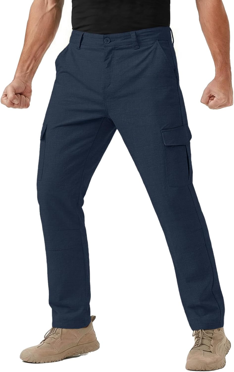 Runcati Mens Cargo Tactical Pants Water Resistant Lightweight Ripstop Outdoor Work Pants with Multi Pockets(No Belt)