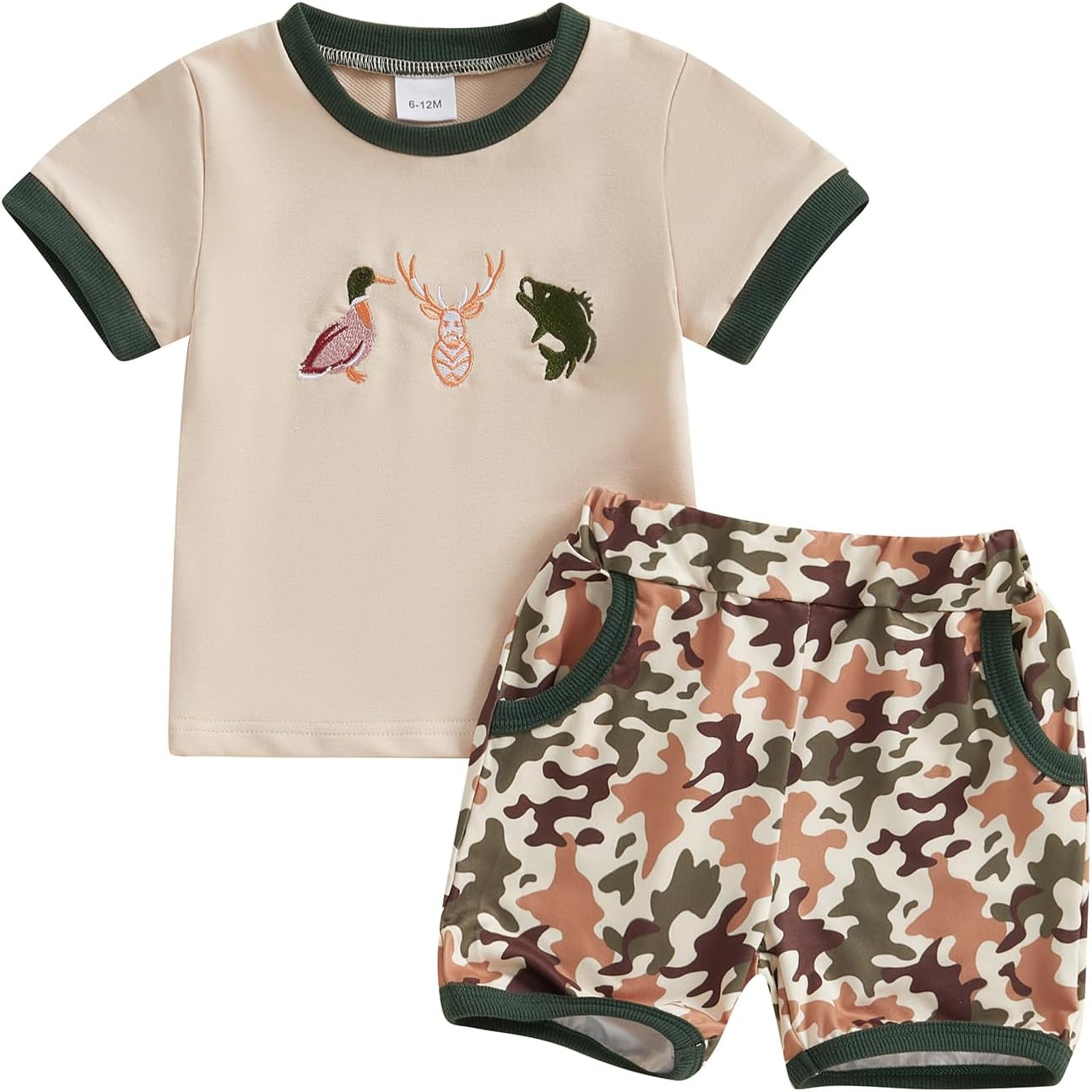 Kaipiclos Baby Boys Clothes Toddler Summer Outfits Short Sleeve Duck Print Pocket T-Shirt Tops and Shorts Farm Baby Clothes