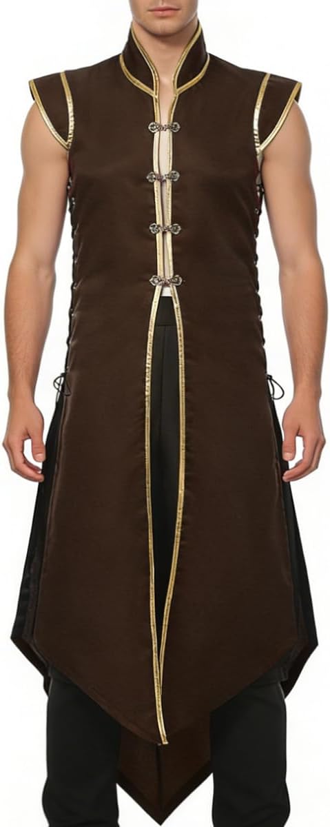 Men’s Medieval Viking Long Vest Renaissance Sleeveless Tunic Tabard Knight Cosplay Costume