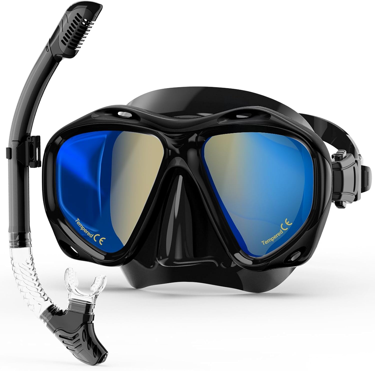 - 𝐁𝐥𝐮𝐞 𝐄𝐥𝐞𝐜𝐭𝐫𝐨𝐩𝐥𝐚𝐭𝐞𝐝 𝐒𝐧𝐨𝐫𝐤𝐞𝐥 𝐌𝐚𝐬𝐤: Boasts enhanced electroplating and impact-resistant tempered glass lenses. Its eye-catching blue look boosts appeal, reduces strong light glare, Vibrant color, easy to find. With anti-glare, scratch-resistant features, it ensures durability and protection, letting you clearly enjoy underwater views