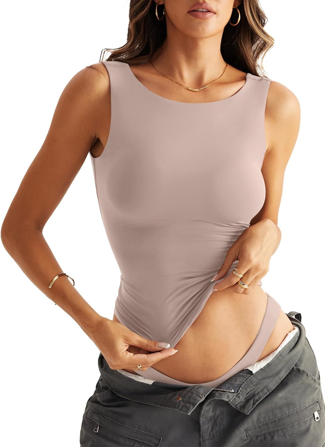 Womens Double Lined Tank Tops Sleeveless Boat Neck Backless Tops Slim Fit Trendy Going Out Summer Outfits 2026