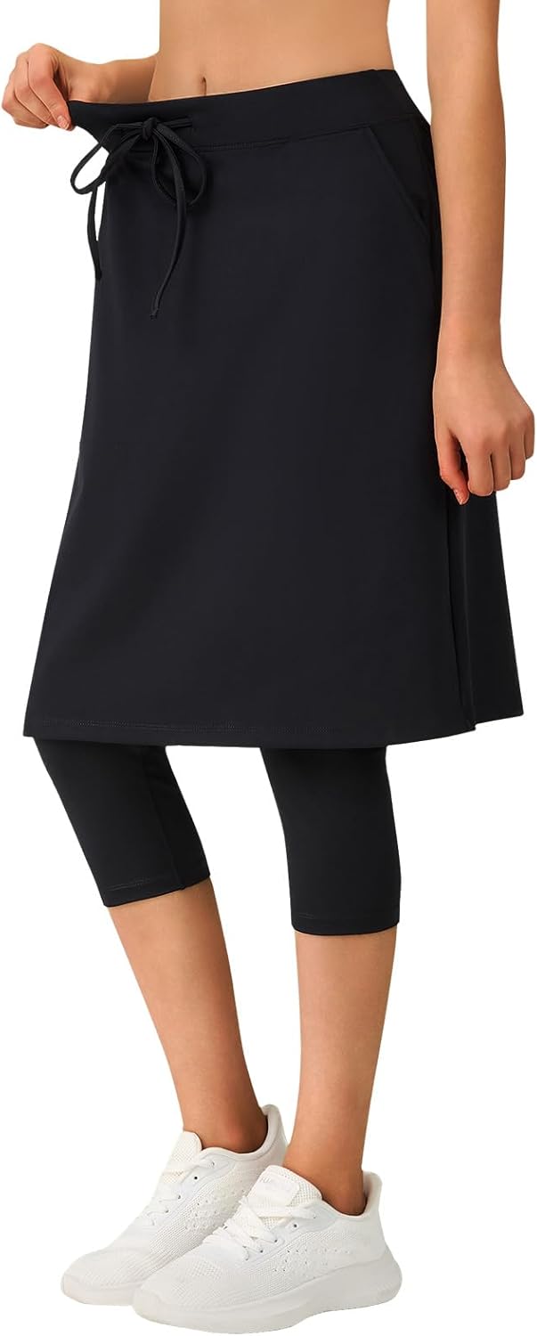 ANIVIVO Skirted Leggings for Women with Pockets,Athletic 22" Knee Length Skirt with Capri Leggings