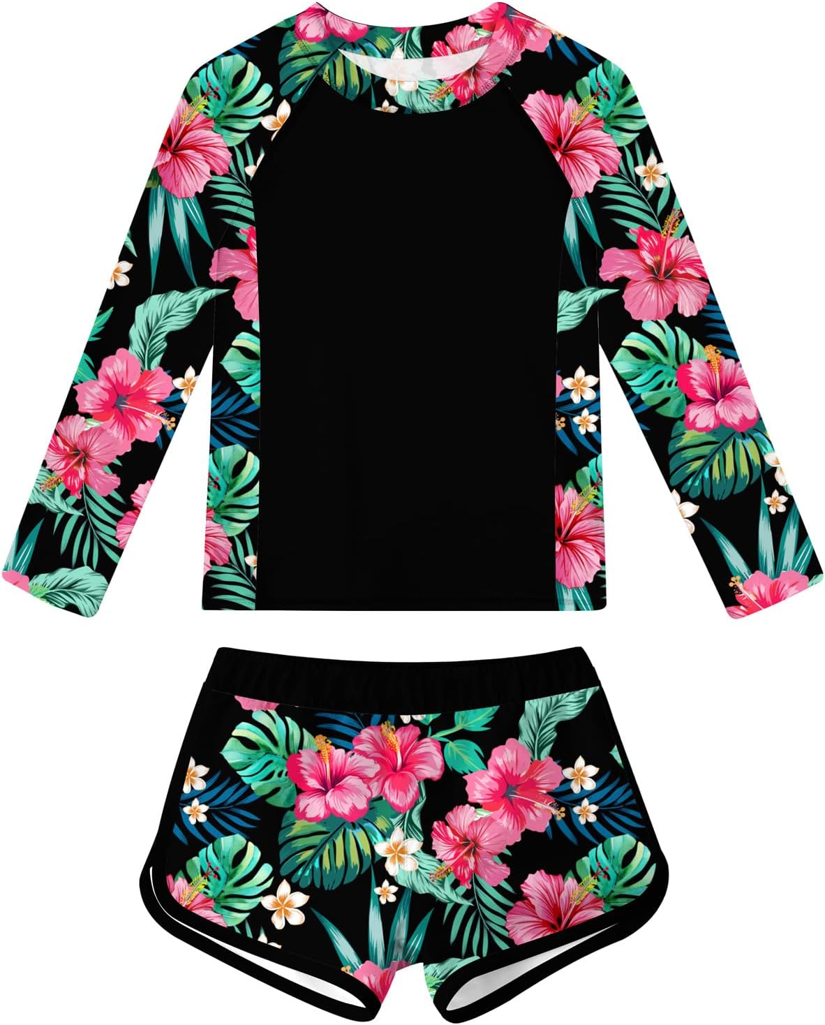 Idgreatim Girls Rash Guard Swimsuit Teens Two Piece Bathing Suit Long Sleeve Swimwear Size 7-16T
