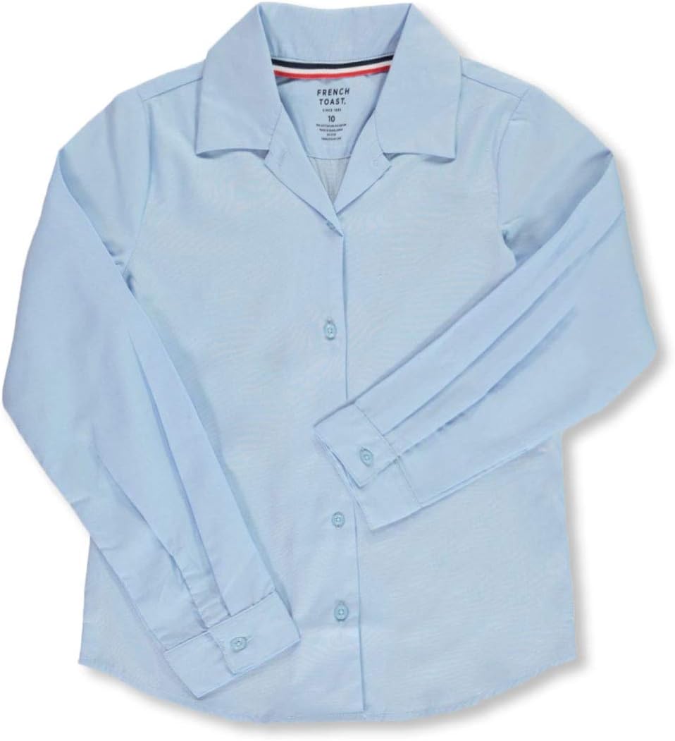 French Toast Girls Uniform Shirts, Long Sleeve Poplin Blouse with Notched Collar, School Uniform for Girls