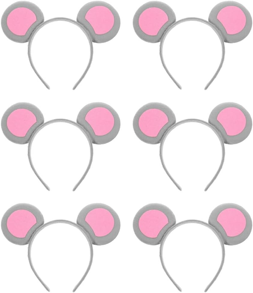 Beaupretty Mouse Ears Headband, 6pcs Mouse Costume Accessory Rat Ears Headband Kids Gray Cartoon Animal Headwear Cosplay Party Photo Props