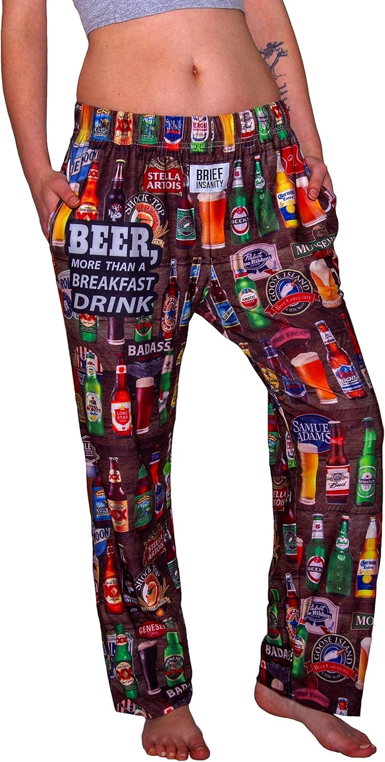 BRIEF INSANITY Lounge Pajama Pants for Men and Women| Beer Print Bottoms - Funny, Humorous, Novelty Loungewear Pants