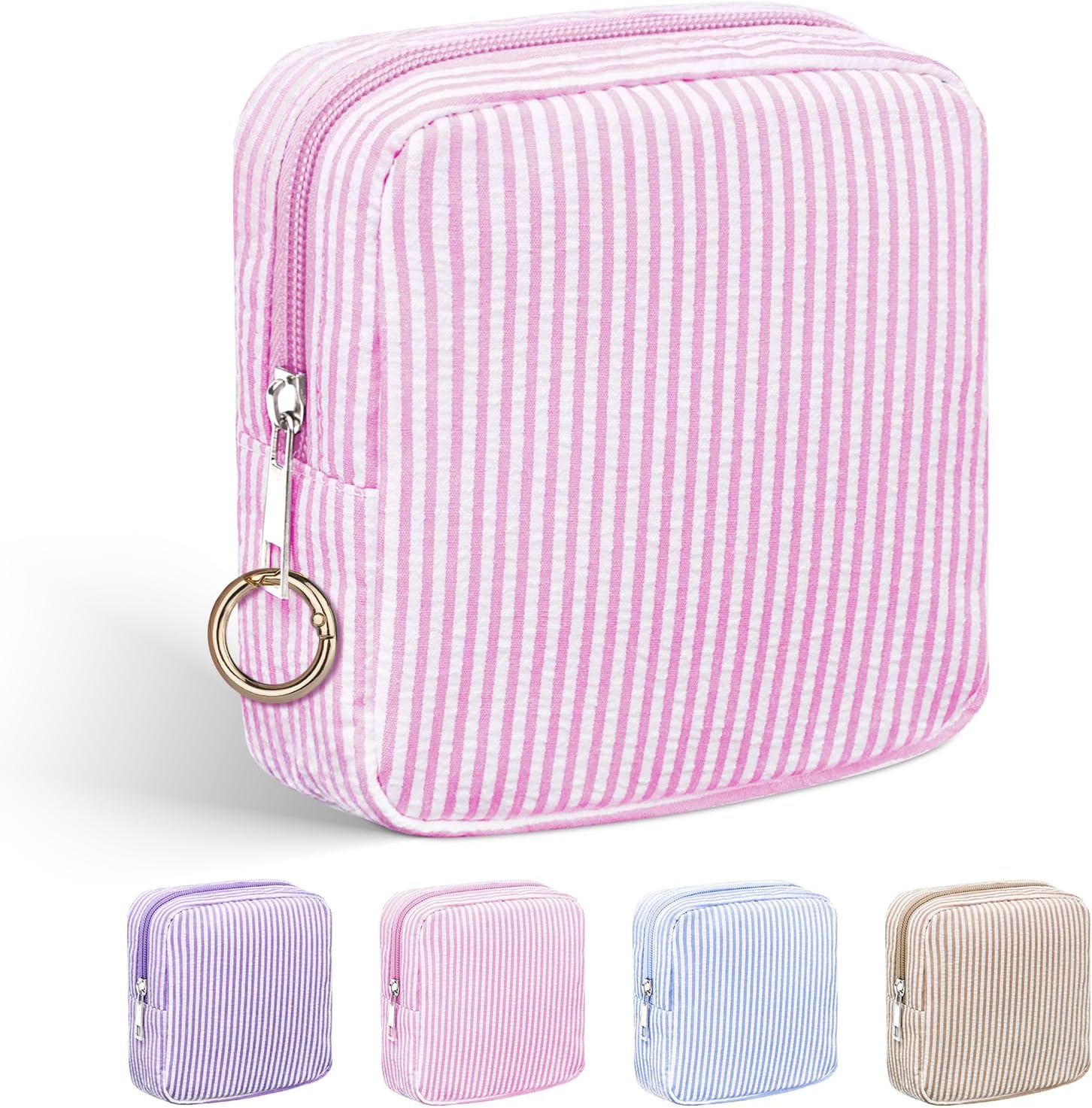 - 【Multi-purpose】Stripes makeup pouches makes it easy to pack and carry cosmetics, jewelry, sanitary napkins, brushes, pencils, small electronic accessories, toiletries, medications, tools or other travel essentials. It's a great bag for travel, parties, camping, beach, gym