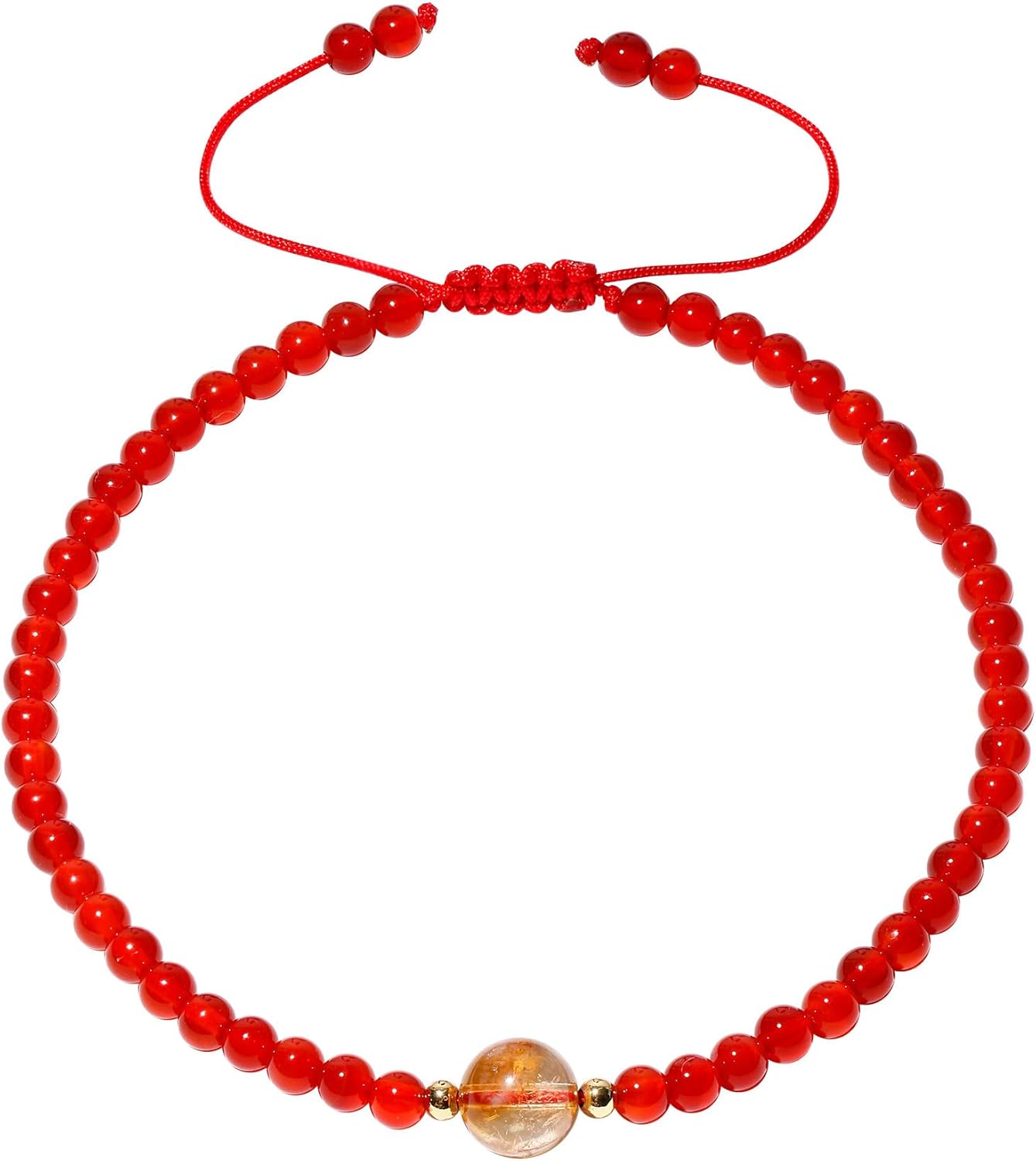 4mm Crystals with Citrine Beaded Anklet Spiritual Gemstones Energy Ankle Bracelets for Women Beach Foot Jewelry (Red Agate)