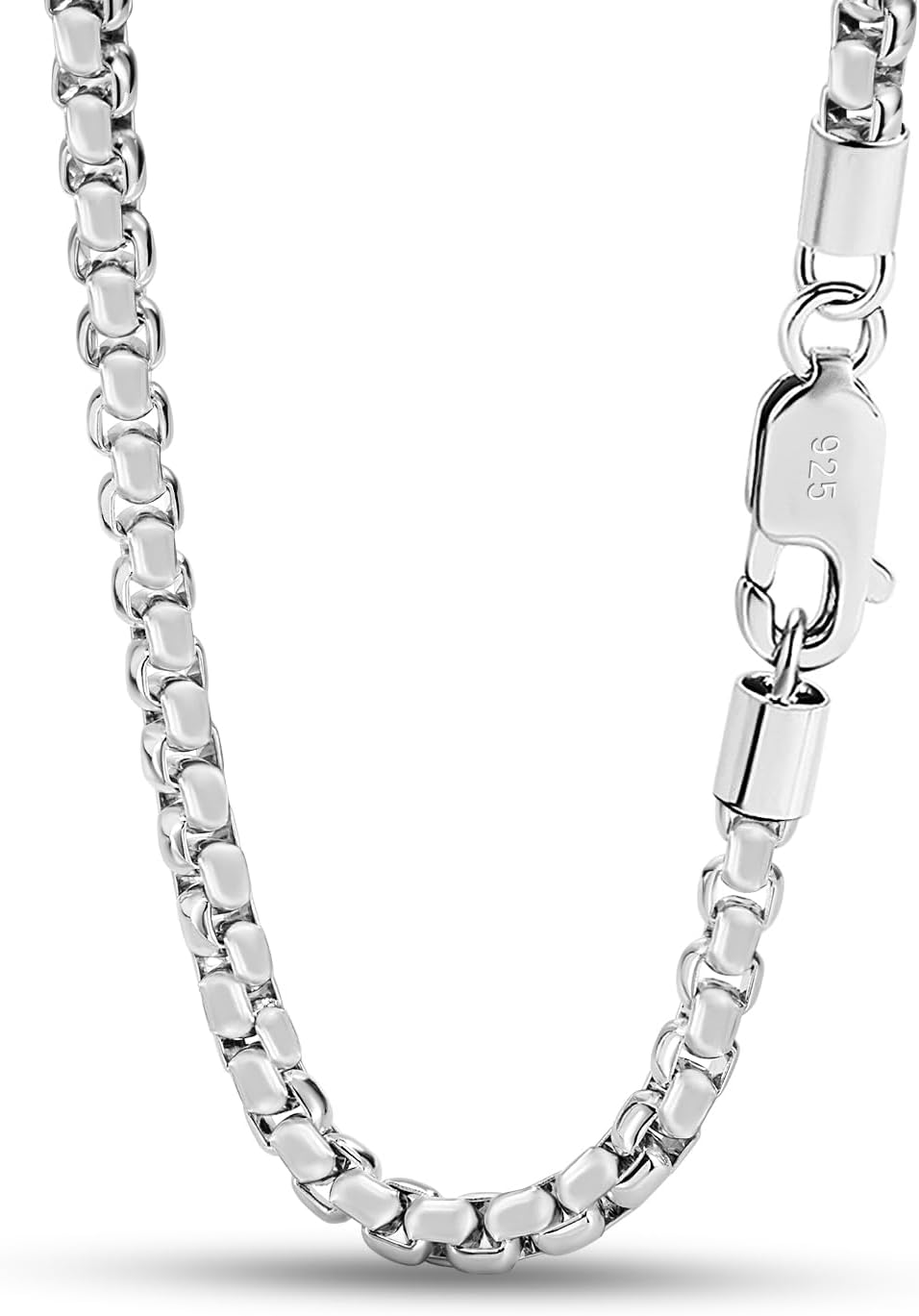 Dankadi Men 925 Sterling Silver 5MM Square Rolo Link Necklace Women Round Box Chain 16" 18" 20" 22" 24" 26" 28" 30" 38" Choker Unisex Jewelry Gift (Silver, 24 inch)