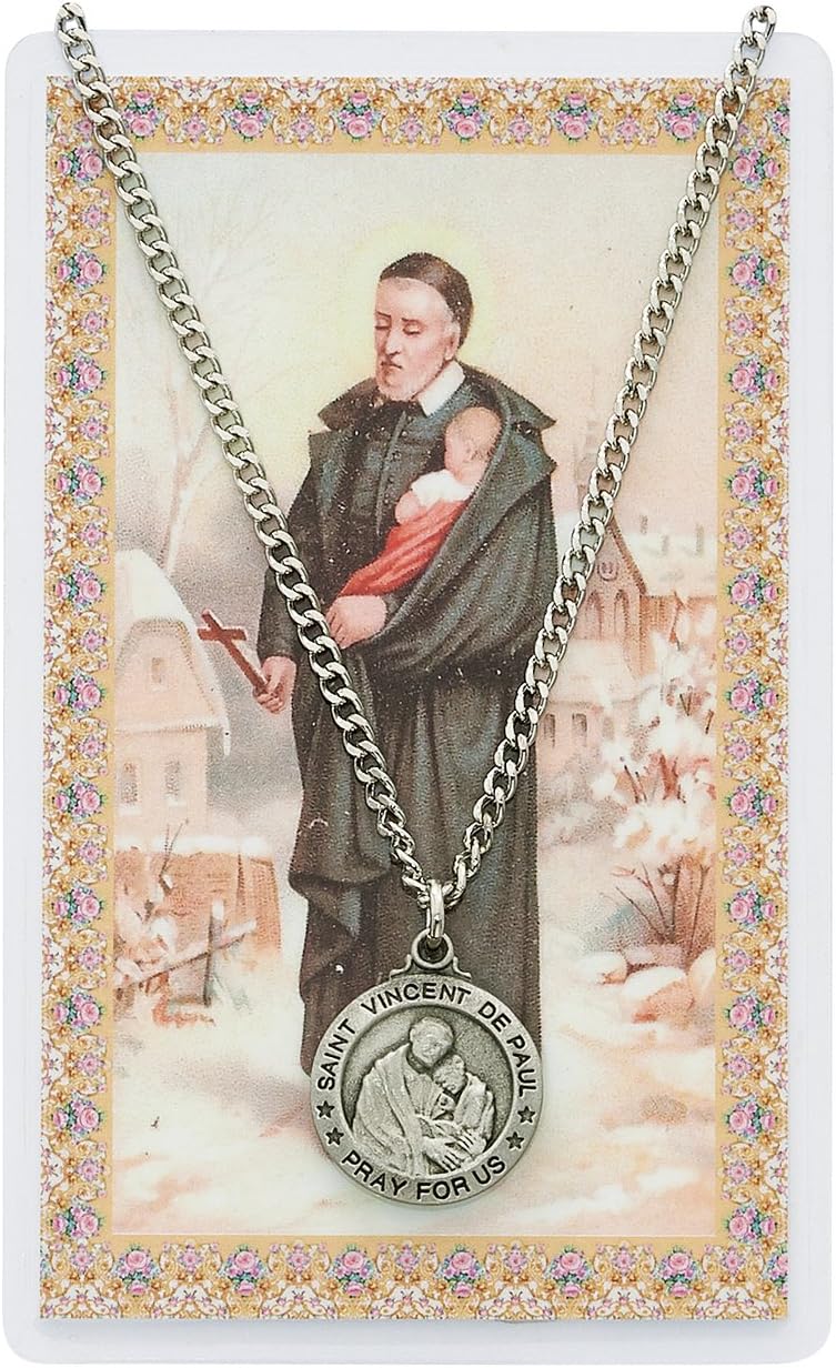 St Vincent De Paul 3/4-inch Pewter Medal Pendant with Holy Card