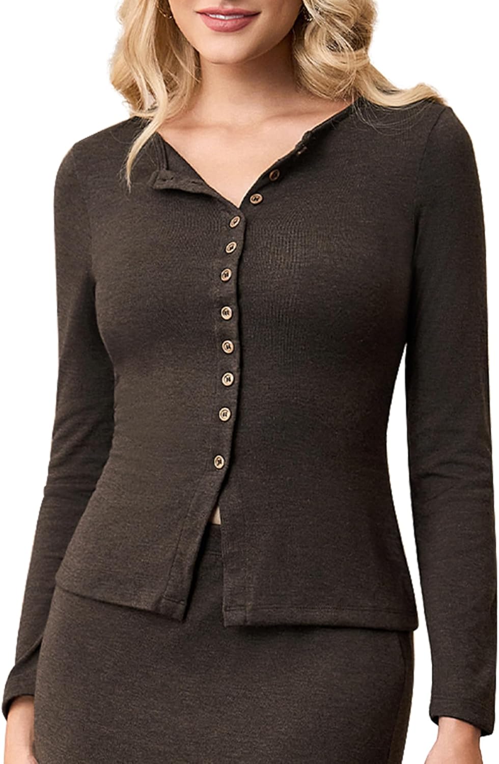 Long Sleeve T Shirt for Women Going Out Top Crewneck Wool Blend Cardigan Basics Slim Fitted Shirt for Fall Office Coffee