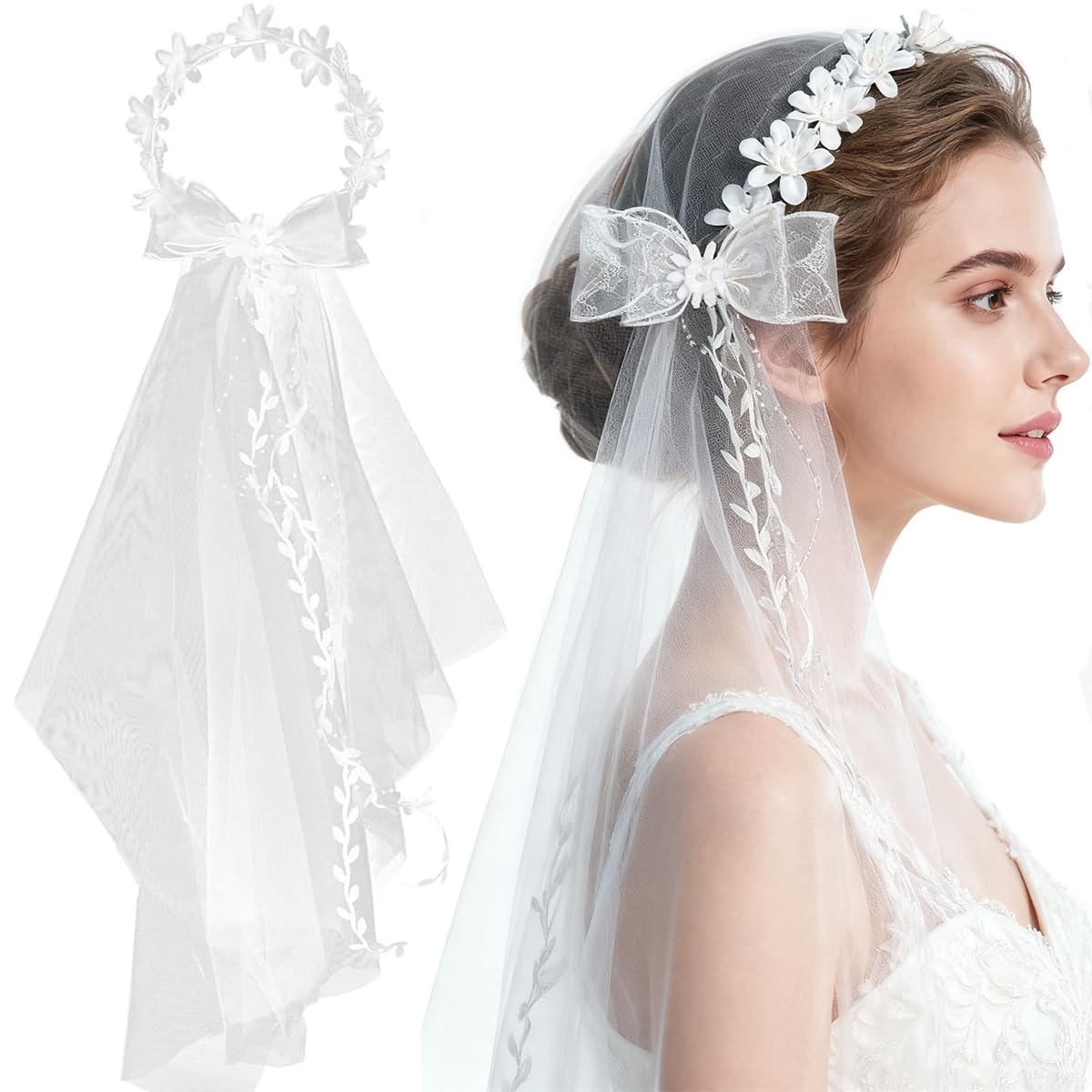 - 【Elegant Aesthetic with Versatile Styling】: Featuring a classic white colour, this veil adds a touch of timeless sophistication to any bridal look. Its versatile design pairs beautifully with various hairstyles whether updo, half up, or loose curls making it a must-have accessory for weddings, holy communions, and formal events