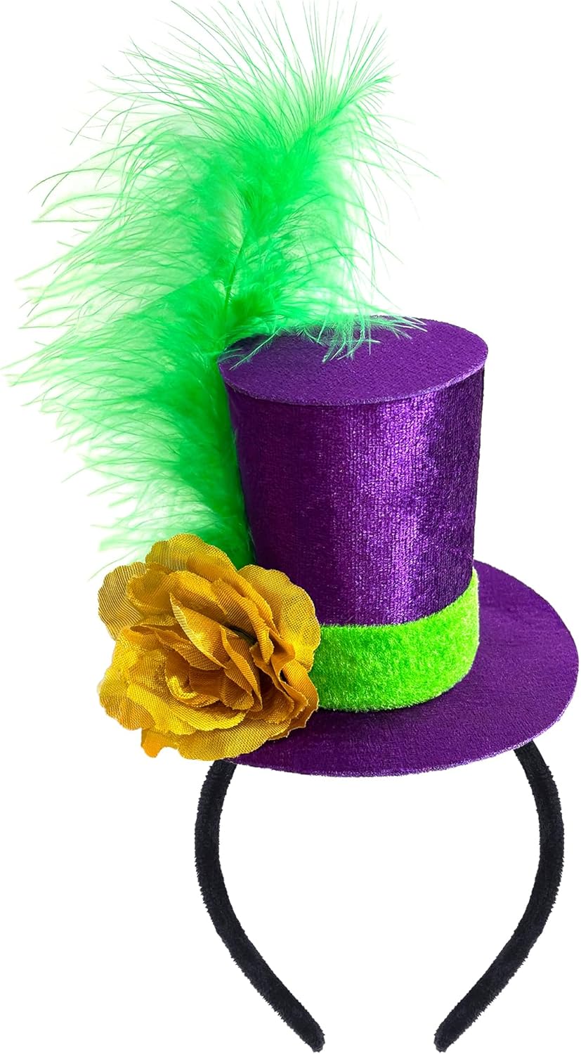 Mardi Gras Mini Top Hat Headband with Feather Fascinator for Adults Teens Mardi Gras Costume Party Holiday Event Accessories Purple