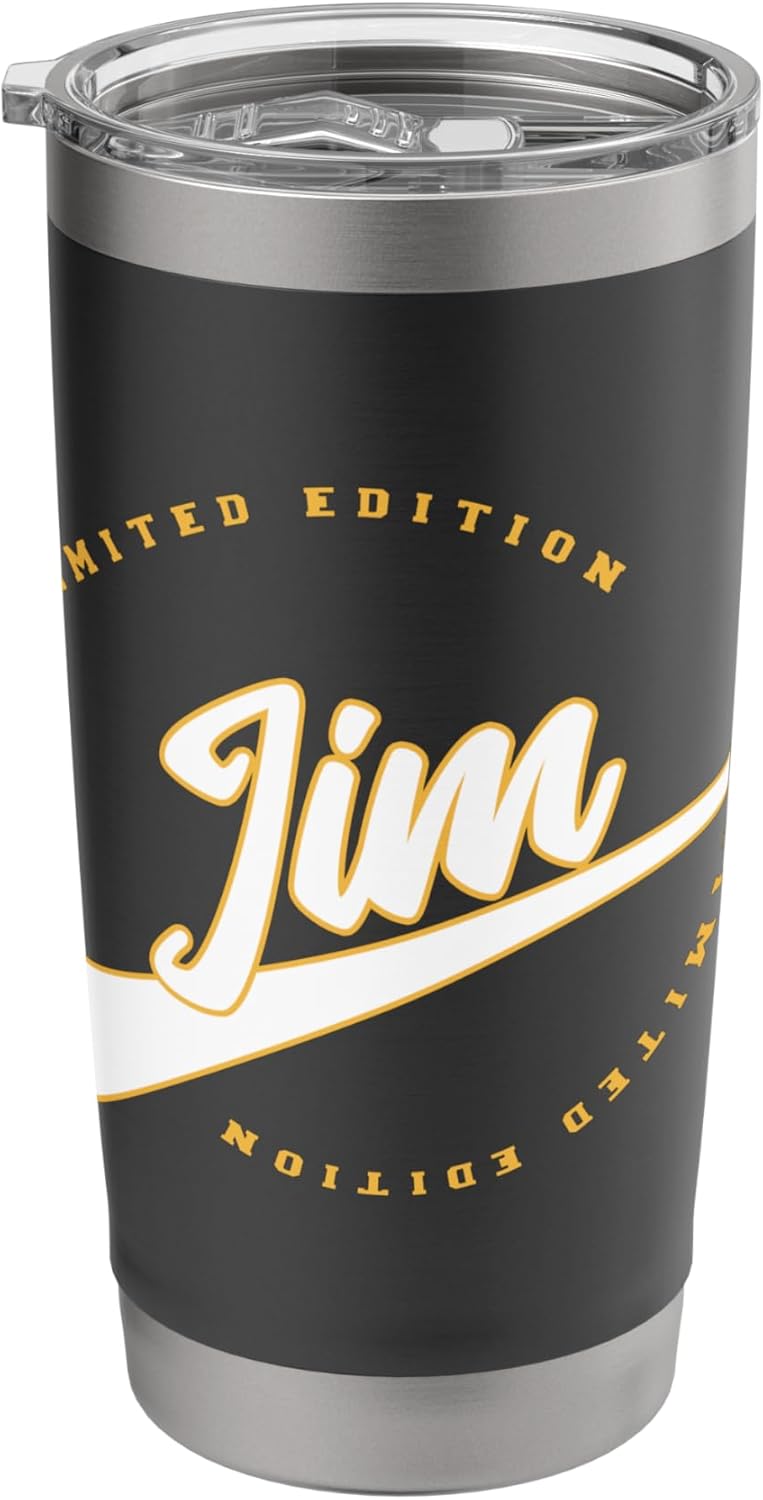 - The perfect personalized gift for birthdays, Christmas, a Jim Party or a Jim Meetup. The design features a first name design with a retro look.