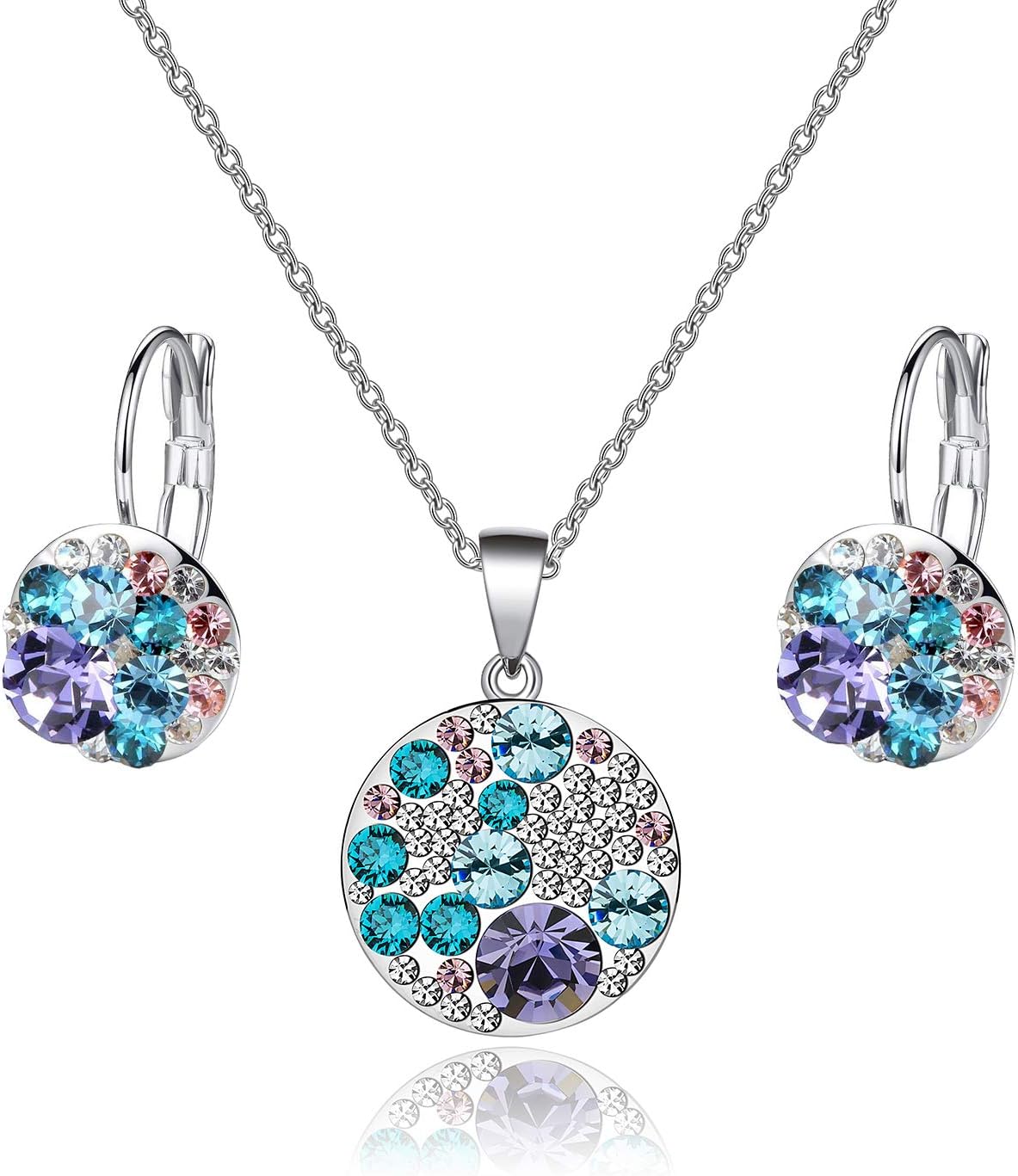 EVEVIC Austrian Crystals Round Disc Pendant Necklace Earrings for Women 14K Gold Plated Hypoallergenic Jewelry Sets