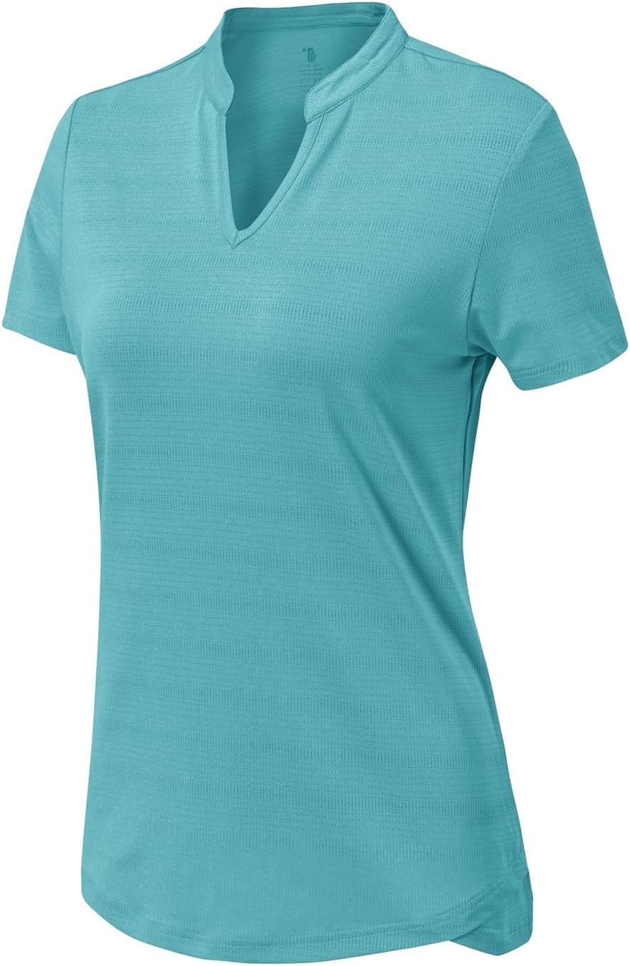 YSENTO Women's Dry Fit Golf Polo Shirts Tops Short Sleeve V Neck Collarless Apparel Shirts Clothes