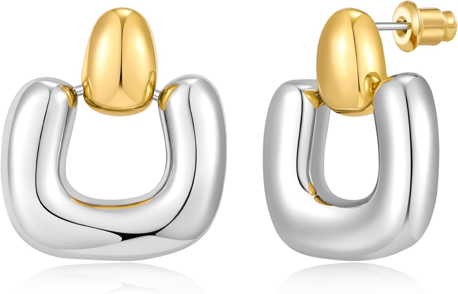 Gold And Silver Statement Earrings For Women Large Stud Two Toned Geometric Earring