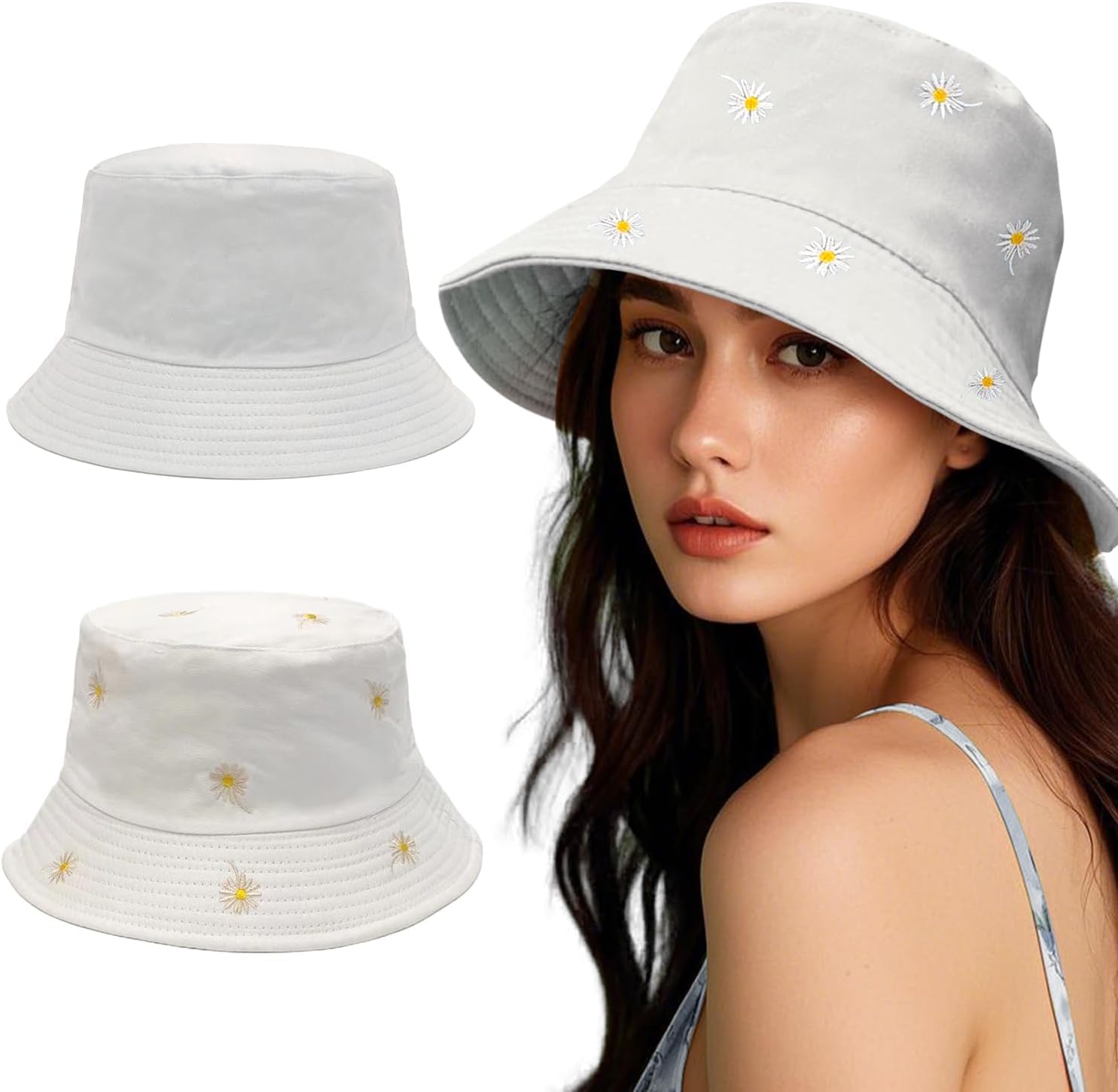 Flower Reversible Bucket Hat Cotton Summer Travel Beach Sun Hats Emboridery for Women Men