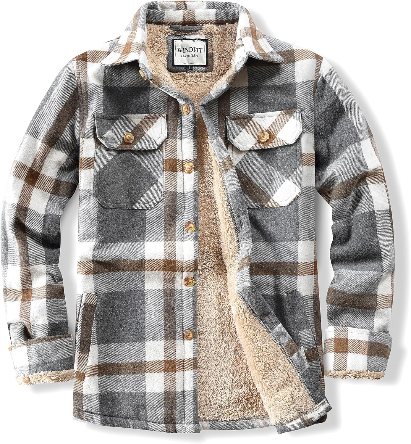Men's Cotton Sherpa Lined Button Down Flannel Shirt Jacket Plaid Soft Outdoor Flannel Jacket Shirt