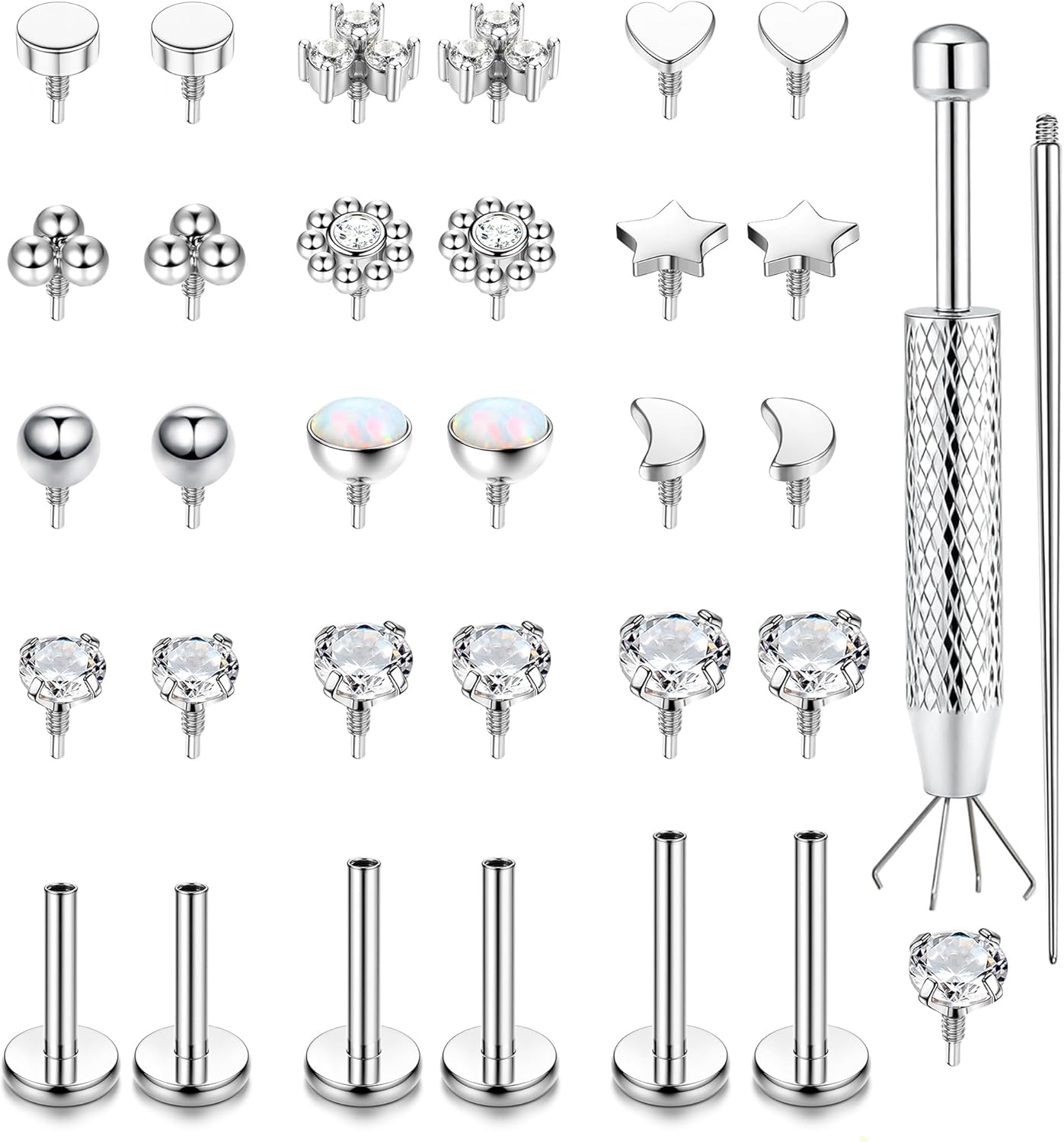 16G 18G Flat Back Stud Earrings for Women - Hypoallergenic Surgical Steel Internal Thread Stud Piercing Jewelry for Tragus Helix Cartilage Conch Nose 14K Gold Plated Lip Labret Medusa Piercing Silver