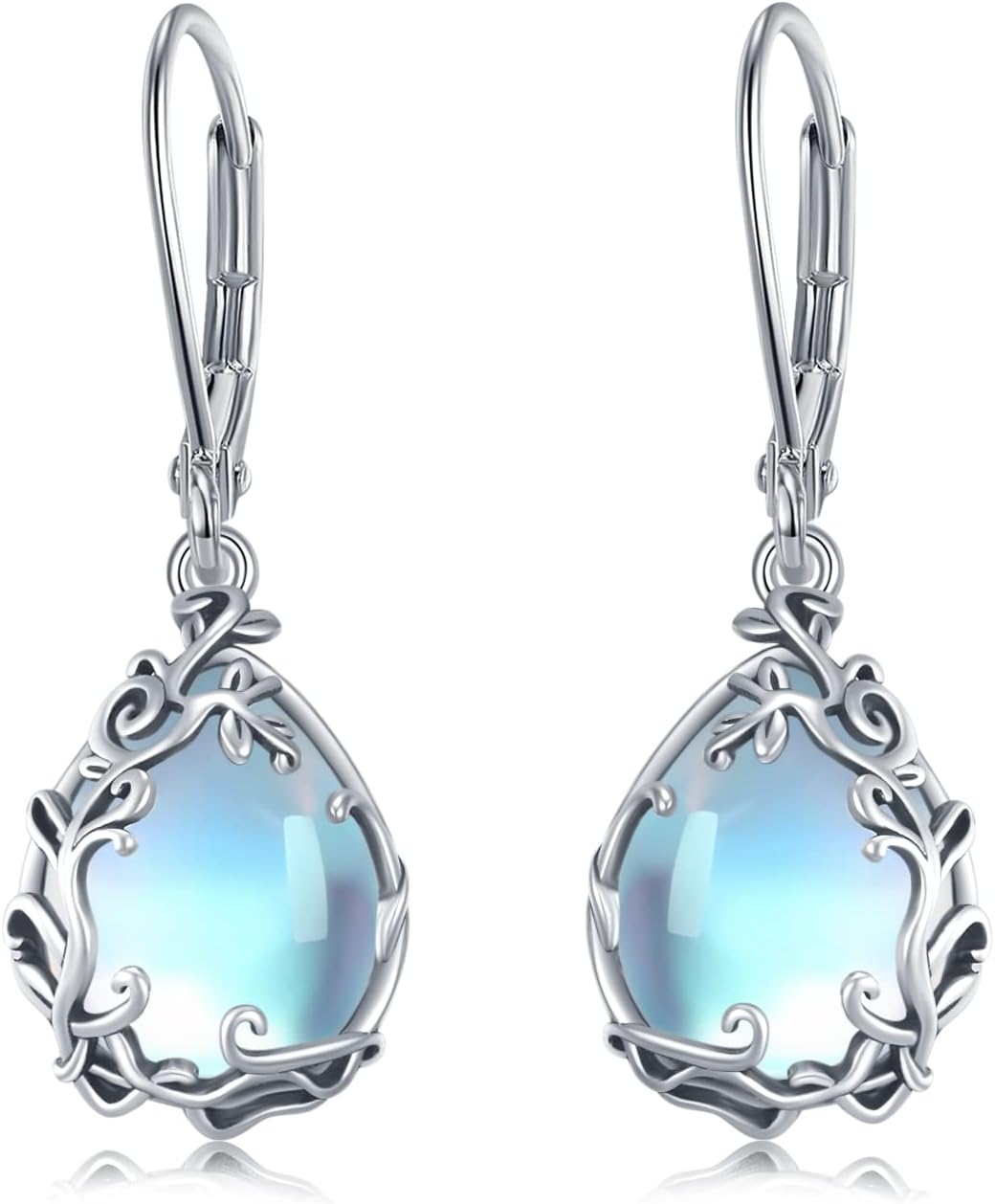 Butterfly/Fan/Mermaid Tail/Dragonfly/Celtic/Moonstone/Black Onyx/Moss Agate Teardrop Drop Dangle Earrings Jewelry Gifts for Women Mom Wife