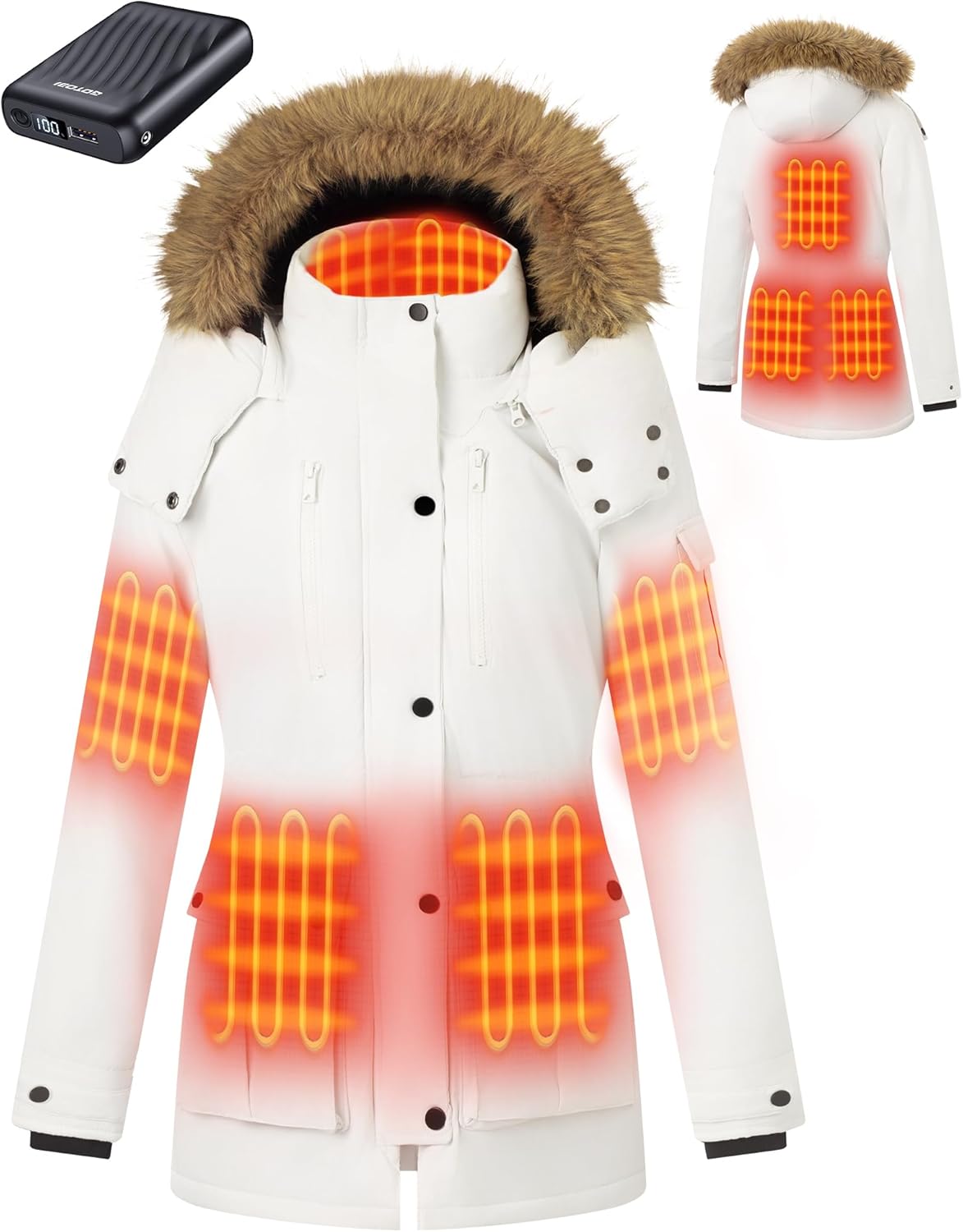 Heated Jackets for Women with 18400mAh 12V Battery Pack - Windproof Parka Womens Heated Jacket with Detachable Hood