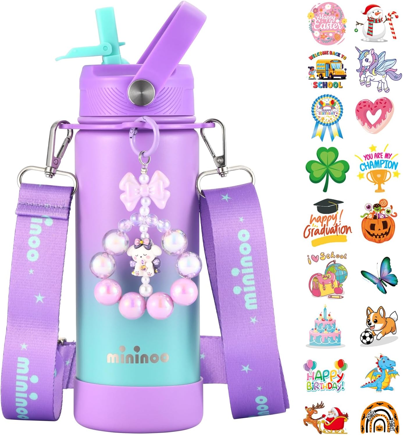 - 【Decorate & Shine with Stickers + Bead Charm】Turn hydration into a creative adventure! With 50 fun holiday-themed stickers and a dangling cartoon bead string charm, kids can personalize their bottle to match their mood, style, or season. A perfect gift for birthdays or Christmas