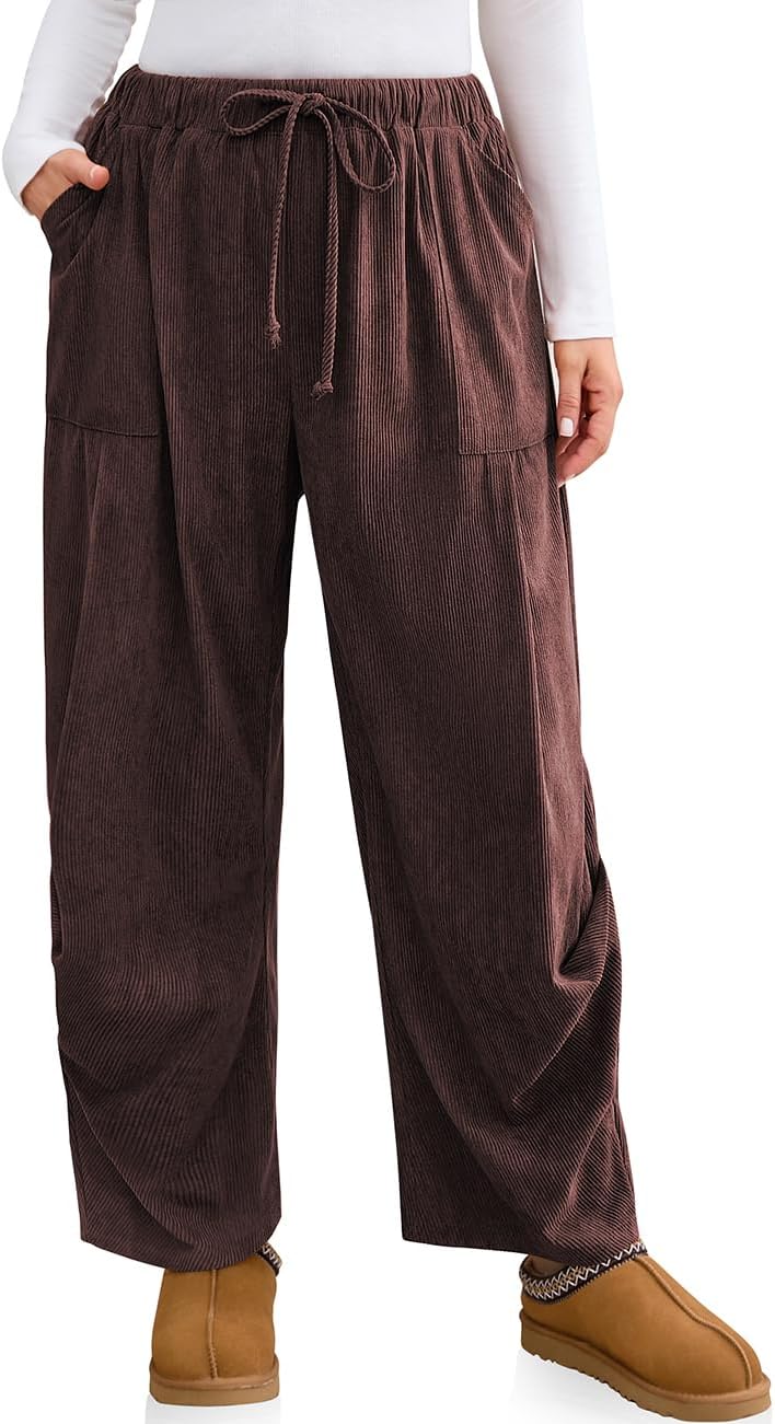 TARSE Women Corduroy Baggy Harem Pants Drawstring Loose Wide Leg Casual Lounge Pant 2025 Travel Vacation Clothes with Pockets