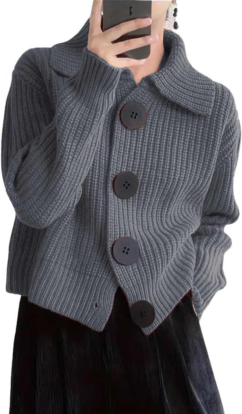 chouyatou Women's 2025 Fall Button Down Cropped Cardigan Sweater Chunky Knit Work Casual Cardigan Jacket