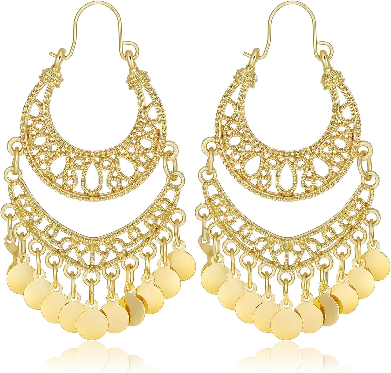 Vintage Boho Chunky Dangle Earrings for Women - Golden Plated Statement Drop Earrings with Intricate Openwork Tribal Pattern, Wedding & Party Accessories (1 Pair)
