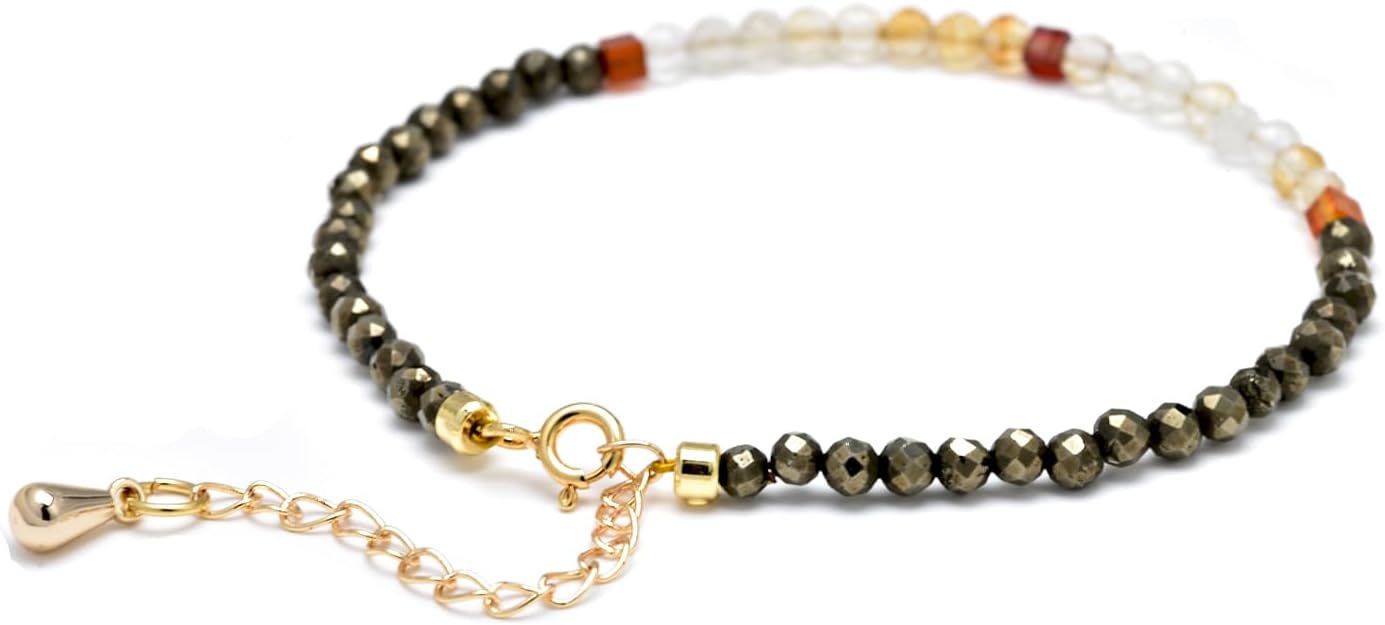 3mm Dainty Money Wealth Bracelet Pyrite and Citrine Stone Crystal Beaded Bracelets for Women 14k Gold Plated Copper