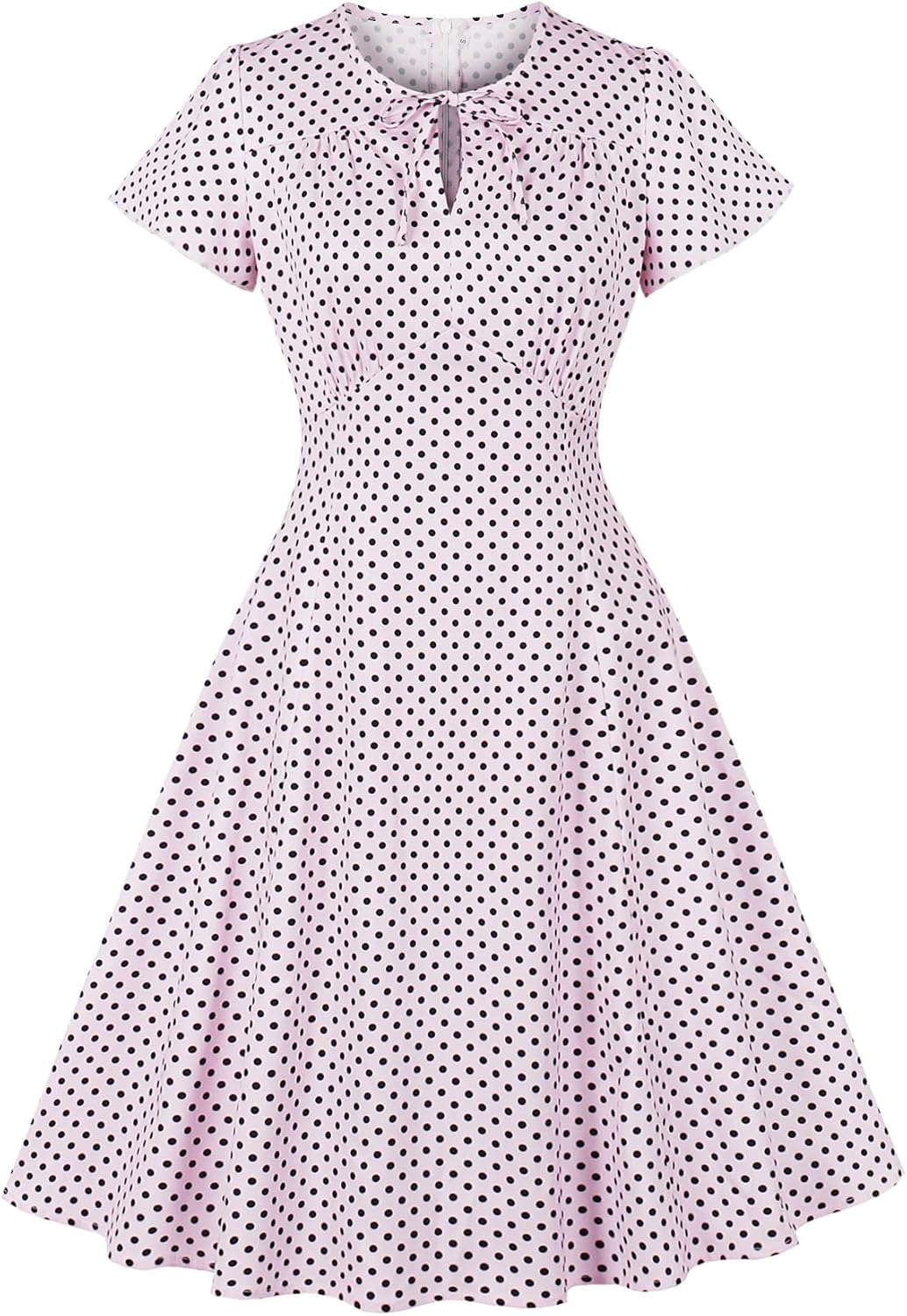Wellwits Women's Keyhole Tie A Line Polka Dots 1960s Vintage Cocktail Dress