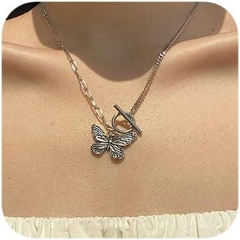 Dainty Simple Boho Steel Chain Necklace Choker Silver Butterfly Pendant Necklaces for Women