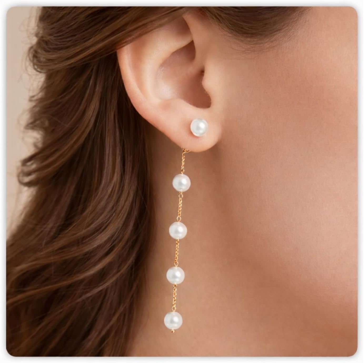 Dainty Pearl Drop Earrings for Women – 4mm/5mm/6mm White Pearl Dangle Earrings in Gold & Silver | Long Bridal Wedding Earrings, Prom Jewelry, Elegant Birthday Gift for Her