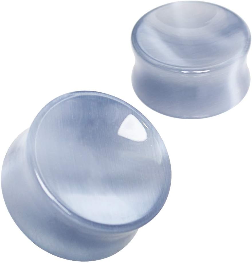 Pierced Owl - Natural Grey Cat's Eye Concave Stone Saddle Plugs, Sold as a Pair