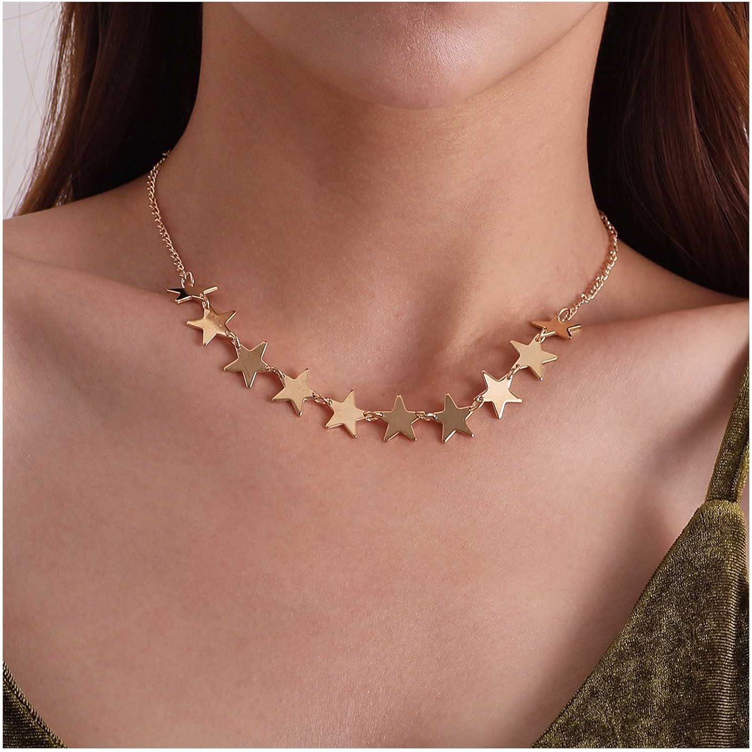 Bohemia Lucky Star Necklace Choker Chain Star Station Choker Necklace Gold Celestial Space Necklace Chain Minimalist Multi Star Necklace Jewelry for Women