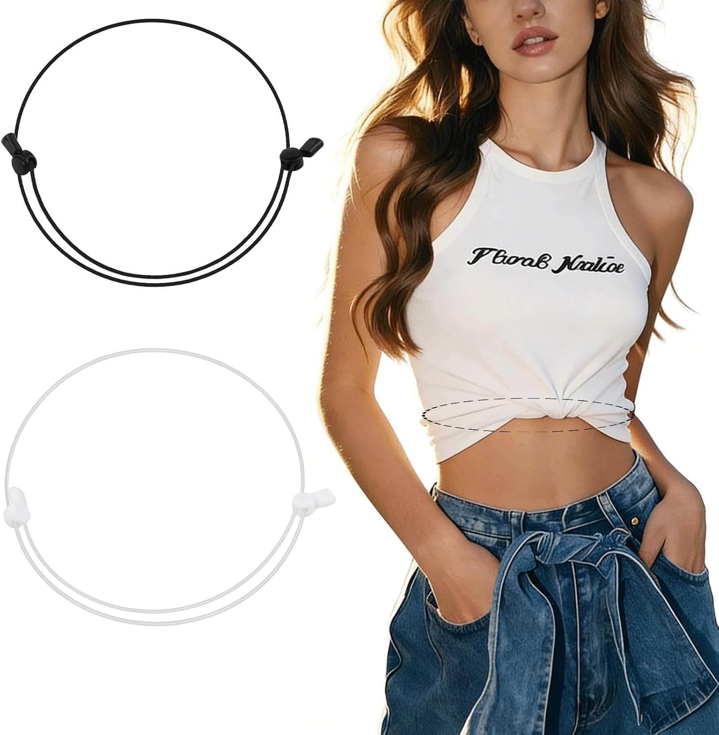 [2Pcs Shirt Tuck Band Women, Adjustable Crop Bands for Sweater and Shirts, Elastic Stretch Belt for Change Style of Top Clothes