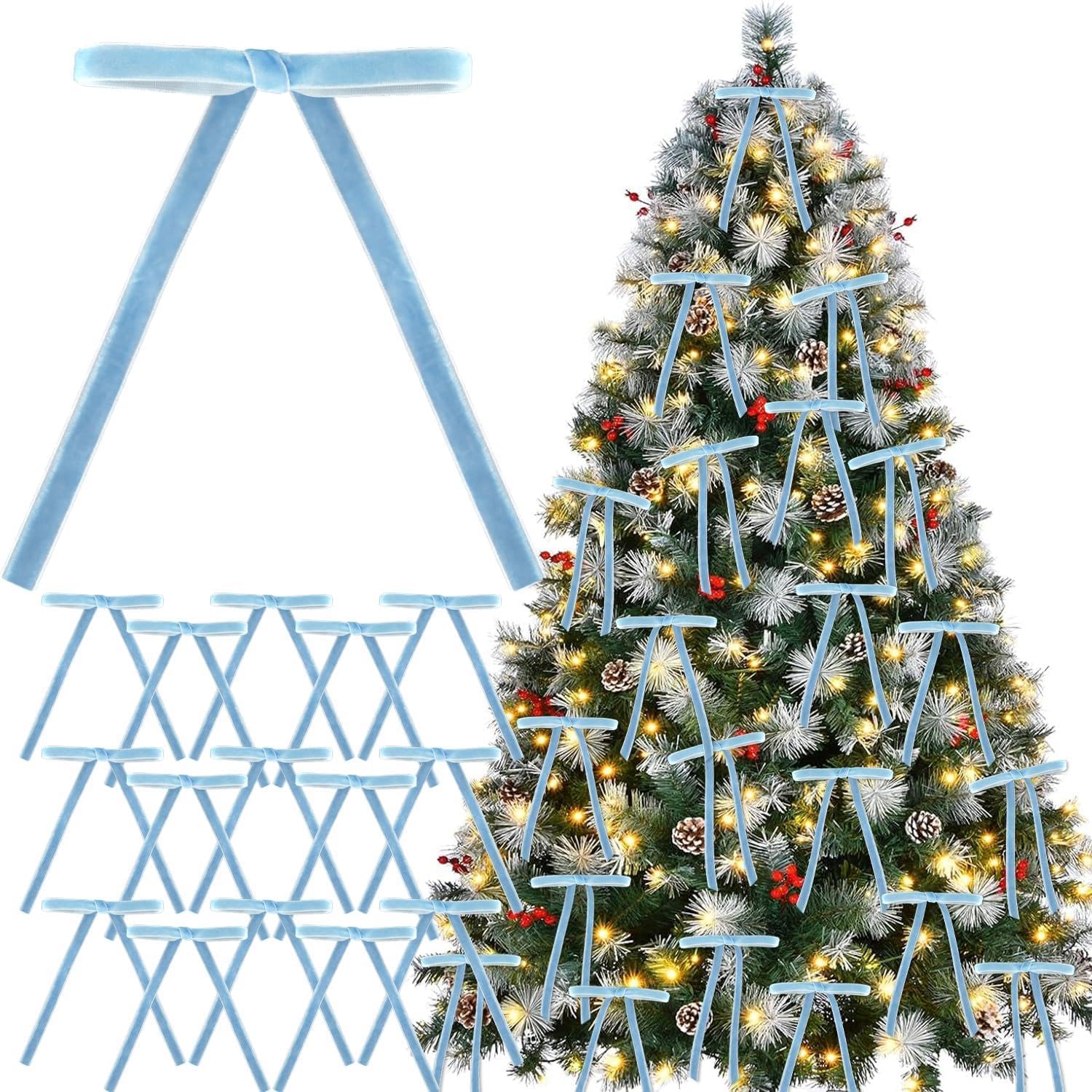 - 【Blue Christmas Tree Decorations Package Included】 30pcs pre-made blue velvet bows for Christmas tree decorations(width: 5”, length 7”), every blue velvet tree bow come with a mini twist tie on the back, wrap twist tie around Christmas tree branches or other Christmas ornaments on the tree to decorate the Christmas tree easily, creating a cohesive, joyful holiday look throughout your home